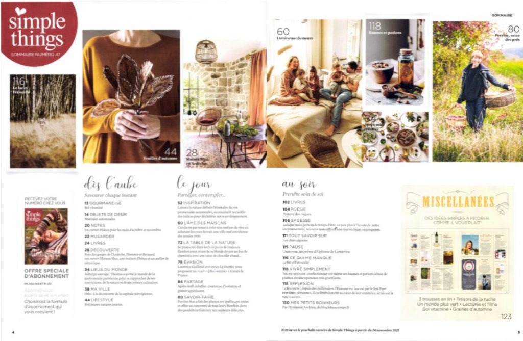 Simple Things c’est une revue féminine différente , qui parle de bien etre , des plaisirs simple de la vie , des cotés positifs … des conseils pour profiter de la vie …