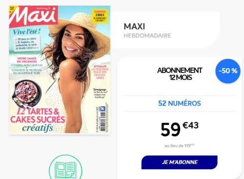 Ce bon plan concernant l’abonnement à Maxi concerne à la fois un abonnement couplé papier+ numérique .. On recevra donc chaque semaine la revue dans sa boite aux lettres , mais on pourra aussi la lire sur sa tablette ou smartphone
