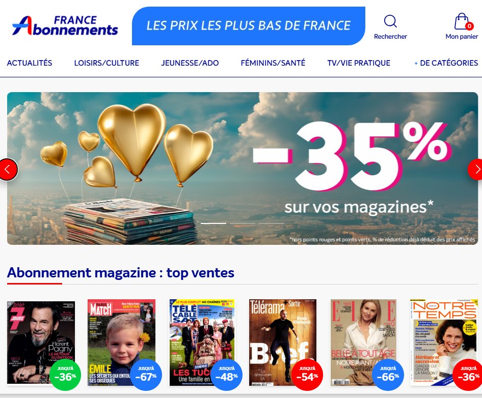 Abonnements magazines pas chers avec 35% de réduction en plus chez France Abonnement