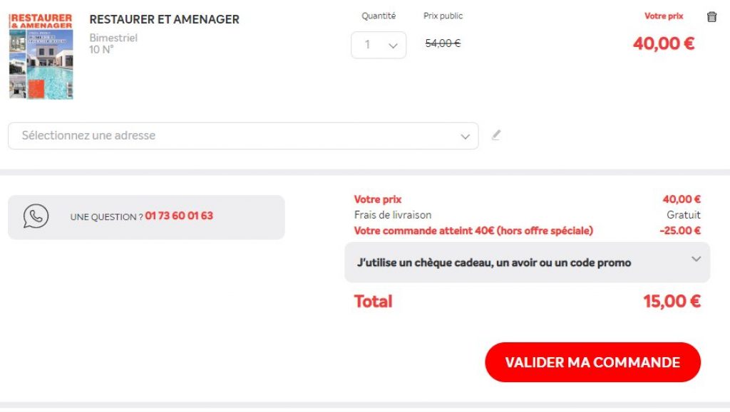 La reduction apparait dans le panier , il n’y a pas besoin de saisir de code promo