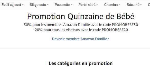 Bon plan pour les parents de jeunes enfants ! avec sur amazon, une grandes sélection d’articles de puériculture ou de jouets qui beneficient de deux codes de réduction :