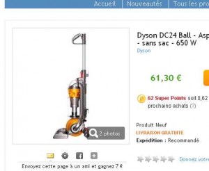 Aspirateur Dyson à 61 euros port inclu (sans doute une erreur de prix ) … TROP TARD