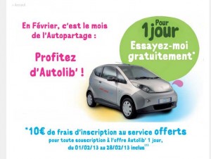 Autolib : frais d’inscription offert dans la formule 1 jour jusqu’au 28 février