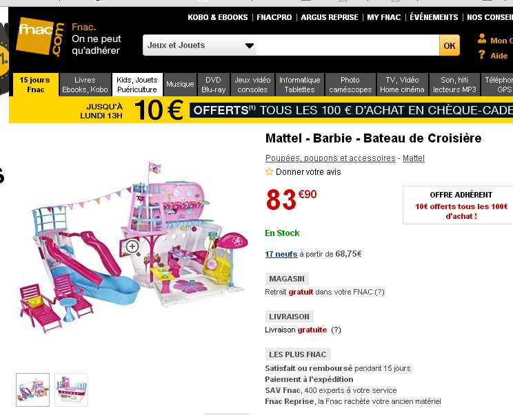 Bateau de croisiere Barbie à moins de 40 euros (contre le double en général)