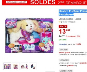 Encore un bon plan jouets dans les soldes sur le site de la fnac … Pour les petites filles on peut voir le jour « Mon chien skateboarder » furreal … Une peluche chien accompagnée d’un skateboard radio commandé … Ce jouet est donc soldé à 13.47 euros sur la fnac avec le retrait gratuit en magasin …