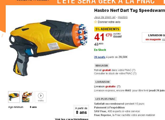 Bon plan Jouet Nerf : Speedwarm à 17 contre autour de 25-30 , pack 1 joueur à 15 euros au lieu de 30