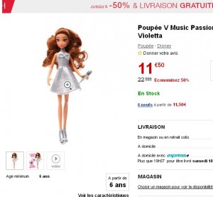 Home » vie pratique » Bon plan jouet : poupée violetta qui chante à 11.5 euros port inclus Bon plan jouet : poupée violetta qui chante à 11.5 euros port inclus Bons plans astuces 16 avril 2015 vie pratique SaveSavedRemoved 0 11.50 euros la poupée violetta qui chante … Vente flash à 50 pourcent sur le site de la fnac .. avec la livraison gratuite .. Bonne affaire pour une petite fille fan de violetta Voir cette poupée violetta