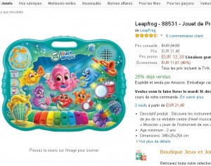 Un jouet musical que l’on peut voir à 30 euros à la fnac , 29 sur avenue des jeux ….