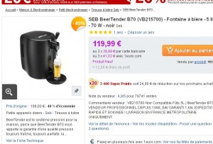 Bon plan machine à biere : 90 euros de prix de revient pour la seb beer tender B70 : le 1er avril seulement