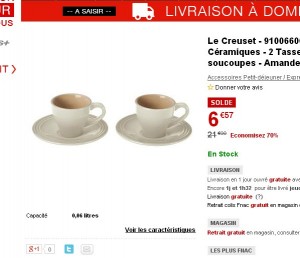 tasse-expresso-lecreusetA la recherche de tasses à café ? Bonne affaire dans les soldes sur le site de la fnac, avec un lot de 2 tasses à expresso de la célebre marque Française  Le Creuset vendu à 6.57 euros ..