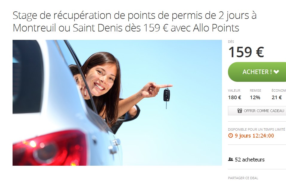 S’il vous manque des points sur votre permis de conduire et que vous envisager d’effectuer un stage pour en récuperer 4 , il faut aller voir sur Groupon qui propose souvent plusieurs offres à de tres bon prix ..