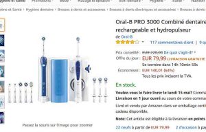 Bonne affaire si vous désirez le top pour se brosser les dents : sur amazo n, on peut voir le combiné dentaire ORAL B PRO 3000 en vente flash à 79.99€ le 14/05 …