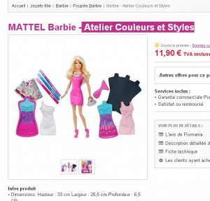 Encore une bonne affaire pour un jouet pour filles sur pixmania .. Il y a la boite barbie atelier couleur et style à 11.9 euros livraison incluse ..