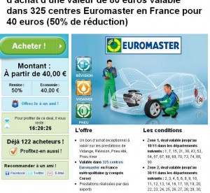En effet pour 40 euros on peut acheter un bon d’achat d’une valeur de 80 valables dans les centres auto EUROMASTER pour ces prestations ..