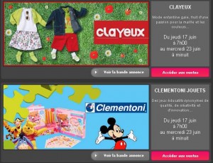 Vous avez des enfants en bas ages ? Show room privee propose du 17 au 23 juin, 2 ventes qui seront susceptibles de vous interesser : Une vente de vetement clayeux et une vente de jeux et jouets clementoni