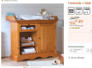 Commode table à langer à moins de 110 euros port inclu