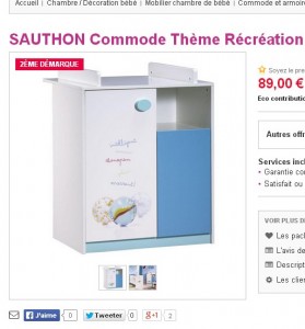 une offre puericulture pour ceux et celles qui attendent un bébé sous peu ou alors qui n’ont pas encore équipé sa chambre .. Sur pixmania on peut voir en solde à la commode / table à langer « récreation » de la marque Sauthon à 89 euros 79 au lieu de plus de 160 .. Mais en plus on peut utiliser le code promo « CHAMBRE20 » .. le prix passe alors à 71.20 euros 63 euros..