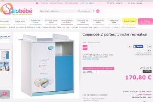 On peut voir cette meme commode à 170 euros (+39 euros de frais de livraison )sur le site allobebe par exemple .. soit le triple du prix tout compris finalement