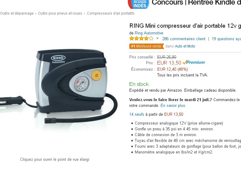 Un compresseur d’air avec manometre qui se branche sur la prise allume cigare de la voiture …