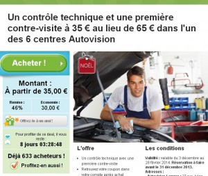 Et une autre super affaire pour un controle technique auto .. Cette fois ci pour les personnes habitant dans le nord .. Sur groupon on peut acheter un bon donnant droit pour 35 euros seulement à un controle technique + une eventuelle contre visite dans un centre autovision du departement ..