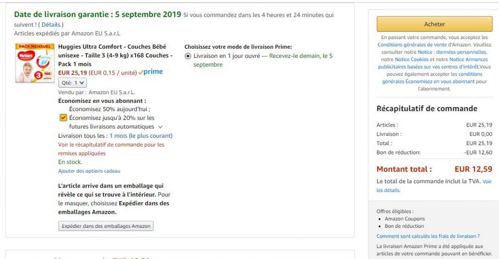 Ainsi , on peut profiter d’une super offre sur Amazon concernant des packs mensuels de couches de la marque Huggies …