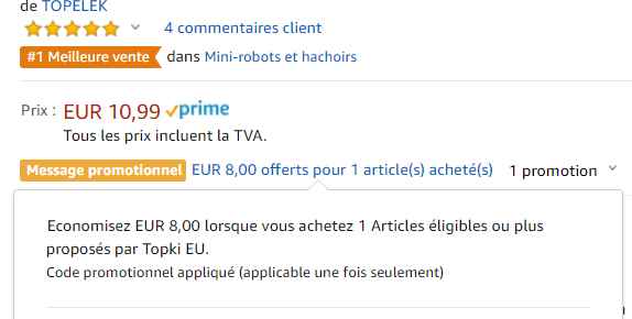 Affiché à 10.99€ il y a une remise de 8€ immédiate en applicant la promotion presente sur la fiche article … Ca fait donc un prix à payer de 2.99€ seulement …