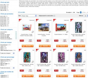 Pour les fans des puzzles, toujours des tres bonnes affaires sur le site ruedespuzzles (de la meme societe que avenuedesjeux) .. Avec jusqu’à 90 pourcent de remise sur de nombreux articles ..