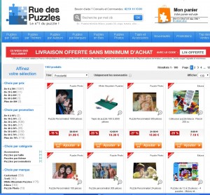 Bonne affaire pour ceux qui aiment les puzzles, ou encore pour offrir pour noel : la livraison est gratuite sur le site specialisé Ruedespuzzles jusqu’au 23 novembre et en plus il y a une rubrique promo avec des puzzles à partir de 0.58 euros (un puzzle de 24 pieces ) .. et sinon des reductions jusqu’à 70%