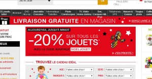 offre qui peut etre interessante pour une commande de jouets de dernière minute : sur le site de la fnac , il y a 20% de remise immediate sur tous les jouets en utilisant le code promo « NOELJOUET » .. En choisissant en plus la livraison en magasin qui est gratuite on doit pouvoir recuperer sa commande avant noel (à condition bien évidement d’etre lundi ou mardi à coté d’un magasin fnac) ..