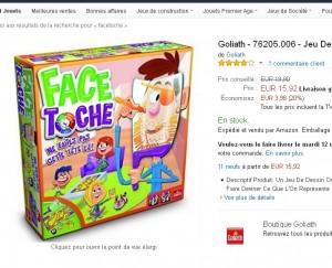 Bonne affaire pour un jeu pour toute la famille : Le jeu goliath Facetoche est à 15.92 euros amazon soit déjà un peu moins cher qu’ailleurs où on le trouve generalement à 20 euros ..