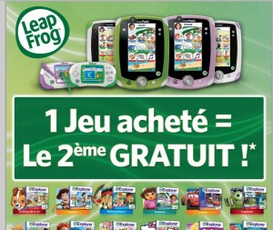 Si votre enfant à eu une console portable éducative Leapster explorer , ou alors une tablette Leappad de la marque leapfrog, une offre intéressante si vous désirez lui acheter des jeux : en effet la marque propose, pour l’achat de deux jeux , le remboursement en différé de l’un des deux ..