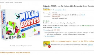 Bonne affaire pour acheter le célèbre jeu du mille bornes : La version mille borne le grand classique est vendue pas chère à 10.3 euros sur amazon (avec la livraison gratuite pour les abonnés premium ) ..