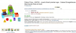 Jouet caisse enregistreuse fisher price à 16 euros contre pres du double ailleurs ..