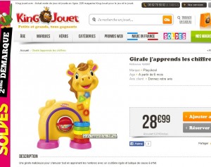Et encore un super prix pour un jouet d’éveil sur pixmania : 7.9 euros port inclus la girafe playskool j’apprend les chiffres .. Un jouet electronique destiné aux enfants à partir de 6 mois ..