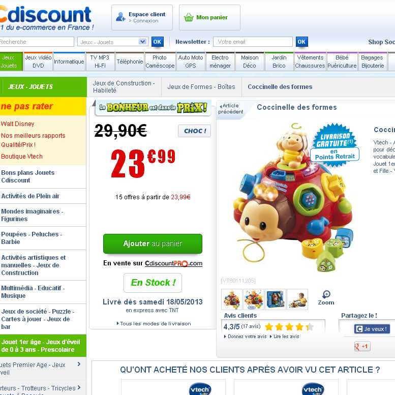 Ce jouet semble se vendre au mieux chez cdiscount à 23.99 euros