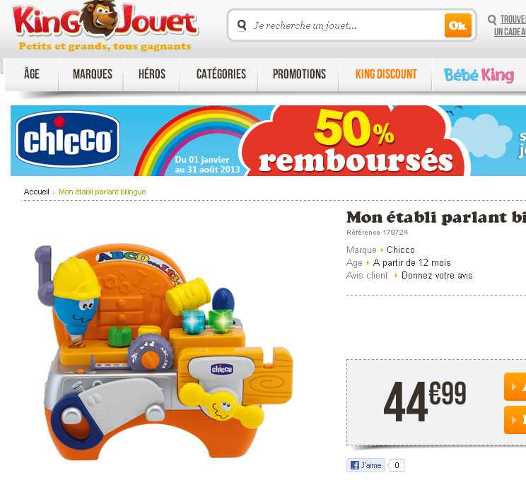 Jouet premier age Etabli de chicco à 20 euros contre autour de 40 ailleurs