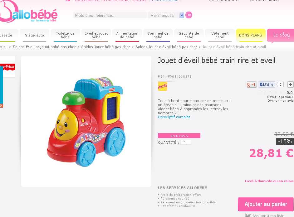 Ce même jouet est vendu à la fnac à 17 euros et même 28 euros chez allo bebe