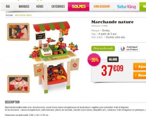 Jouet : Stand de marchande en bois fabriqué en France smoby à 19 euros contre le double normalement