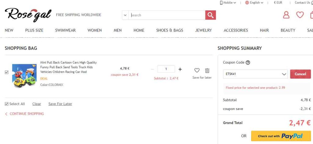 Et bien pour cela on peut voir un mini prix sur le site chinois rosegal pour un lot de 4 vehicules que l’on peut avoir pour 2.47€ seulement en utilisant le code de réduction » ETSK41 »