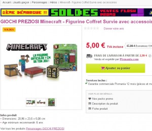 Pour les enfants fans du jeu Minecraft , on peut voir des figurines et accessoires pas chers dans les soldes sur pixmania ..