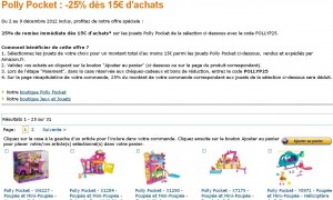 En effet il y a 25% de remise immédiate sur une sélection de jouets polly pocket : personnages, accessoires, maisons , vehicules ..