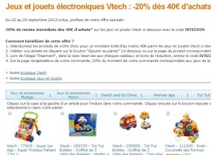 Une offre jouets qui peut etre interessante sur amazon pour faire quelques économies : sur une selection de jouet electronique de la marque Vtech il y a 20% de remise immediate en saisissant le code promo « IVTECH39 » .. Attention, il faut en acheter pour au moins 40 euros ..