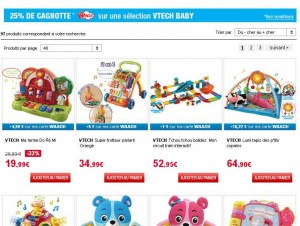 Si vous avez des enfants en bas age , une offre interessante pour vous du coté de auchan.fr : en effet il y a 25% de credit sur la carte de fidélité gratuite sur une selection de jouet de la marque Vtech .. La gamme Vtech Baby precisement concernant des jouets pour tout petits enfants ..