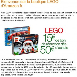 Lego : 15 euros de bon de reduction pour 50 d’achats .. jusqu’au 11 novembre