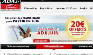 location voitures chez Ada : 20 euros de remise pour une resa de 60 euros en juin
