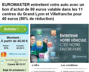 Lyon : 40 euros le bon d’achat de 80 à utiliser dans les centres auto Euromaster