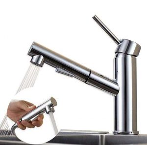 Un mitigeur pivotant à 120 et qui dispose d’une douchette extractible , avec deux types de jets