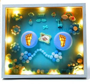 Voici une promotion transmise par un vendeur tiers sur AMazon, concernant un cadrel lumineux , avec le necessaire pour prendre les empreintes d’un pied et d’une main de l’enfant ..