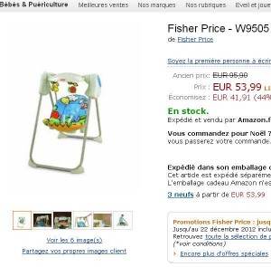 Encore une super offre puériculture sur amazon concernant une balancelle pour bébé .. La balancelle fisher price à projection musicale est à 53.99 euros jusqu’au 22 décembre ..