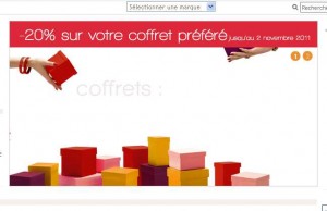 Encore une offre interessante concernant les parfums et eau de toilette et meme produits de beautes : jusqu’au 2 novembre , sur la boutique en ligne Nocibe il y a 20% de remise immediate sur un coffret au choix parmis tous les coffrets en vente ..